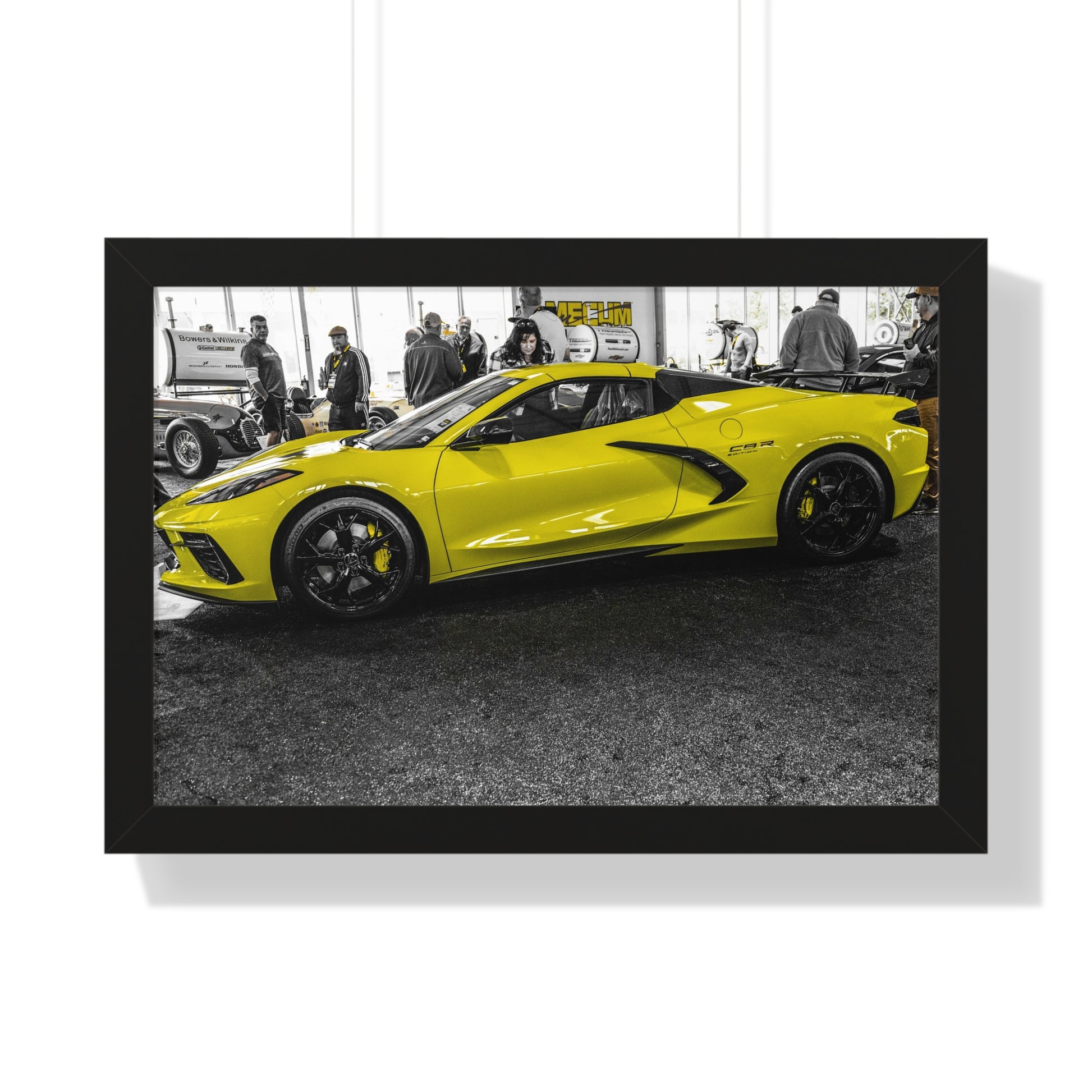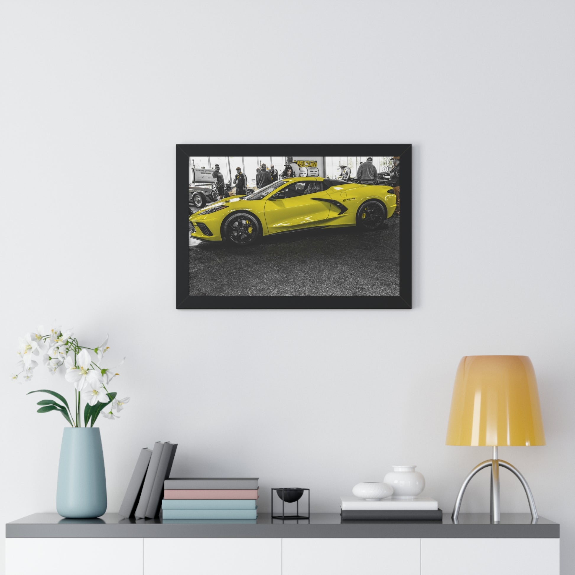 Experience the thrill of modern performance with this striking photography print of the Chevrolet Corvette C8, featured at the Mecum Auto Auction. The bold yellow exterior and aerodynamic design capture the essence of cutting-edge automotive engineering. Surrounded by enthusiasts, this image highlights the Corvette's allure and contemporary appeal, making it a perfect addition to any car lover's collection. Ideal for display in your home, office, or garage, this print celebrates the legacy of the iconic Corvette and its status as a symbol of speed and style.