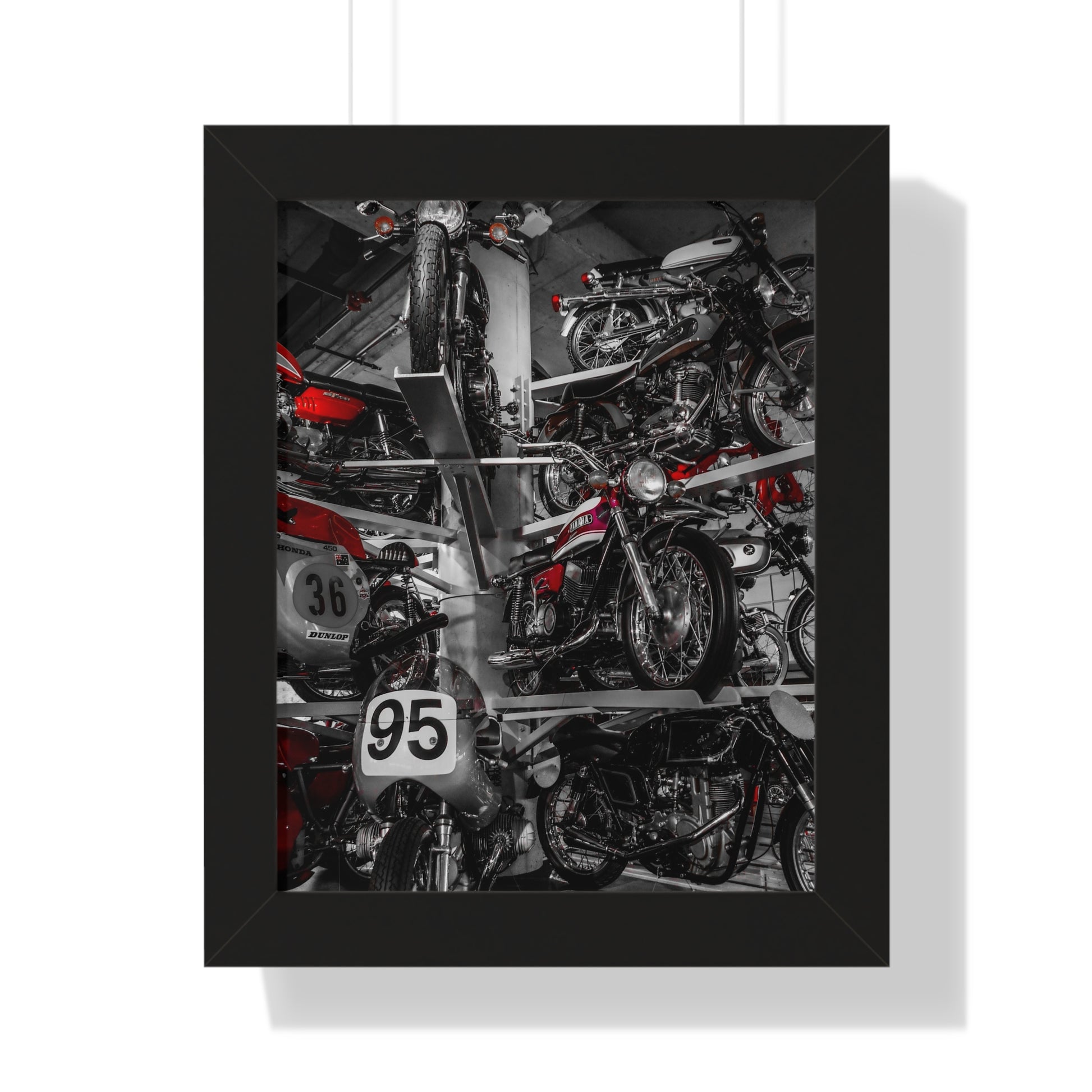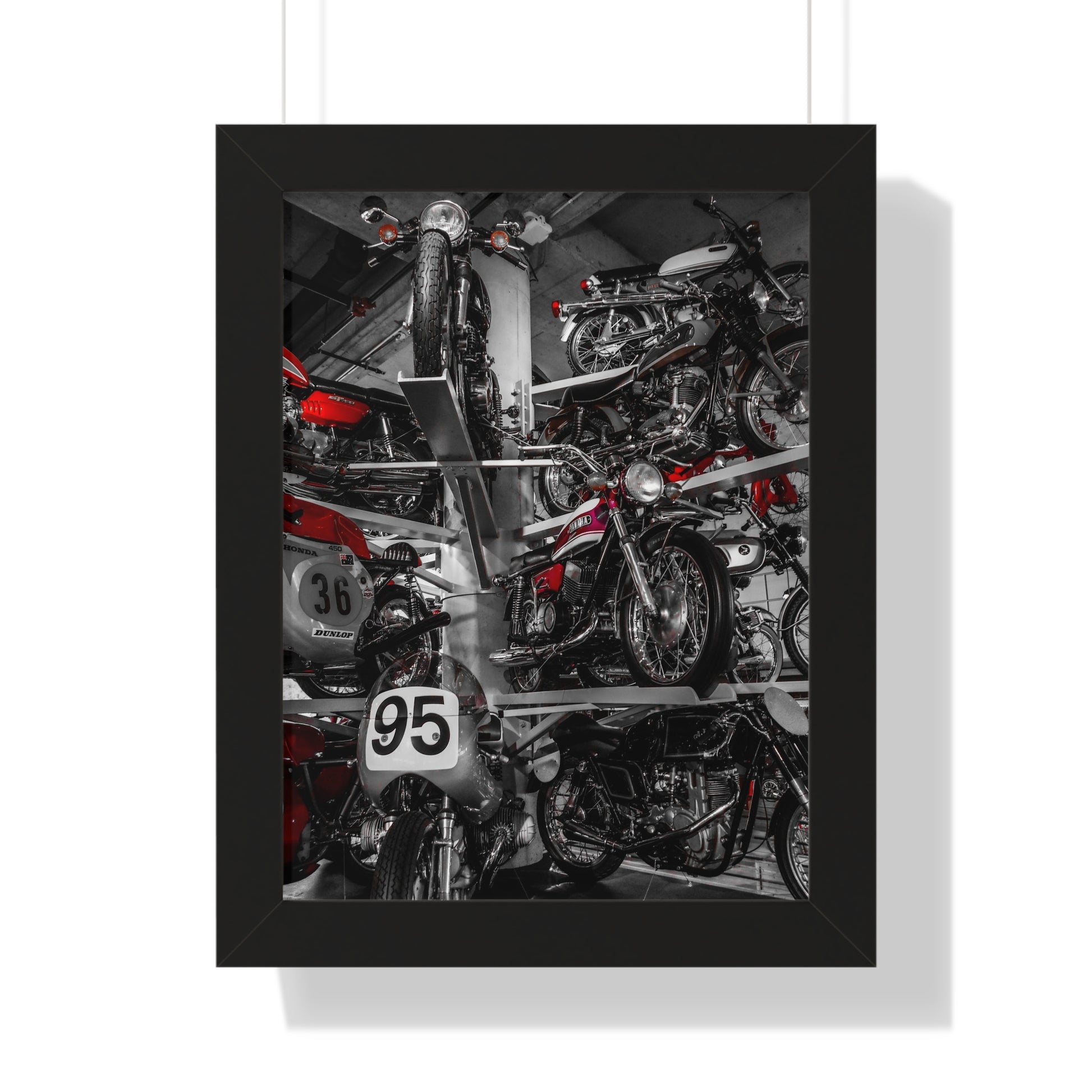 This motorcycle photography Poster from Barber Motorsport Museum exudes a cool and edgy vibe, perfect for motorcycle enthusiasts and vintage decor lovers. It can be a unique addition to a man cave or a retro-themed room. Ideal for Father's Day, birthdays, or as a gift for a motorcycle lover.