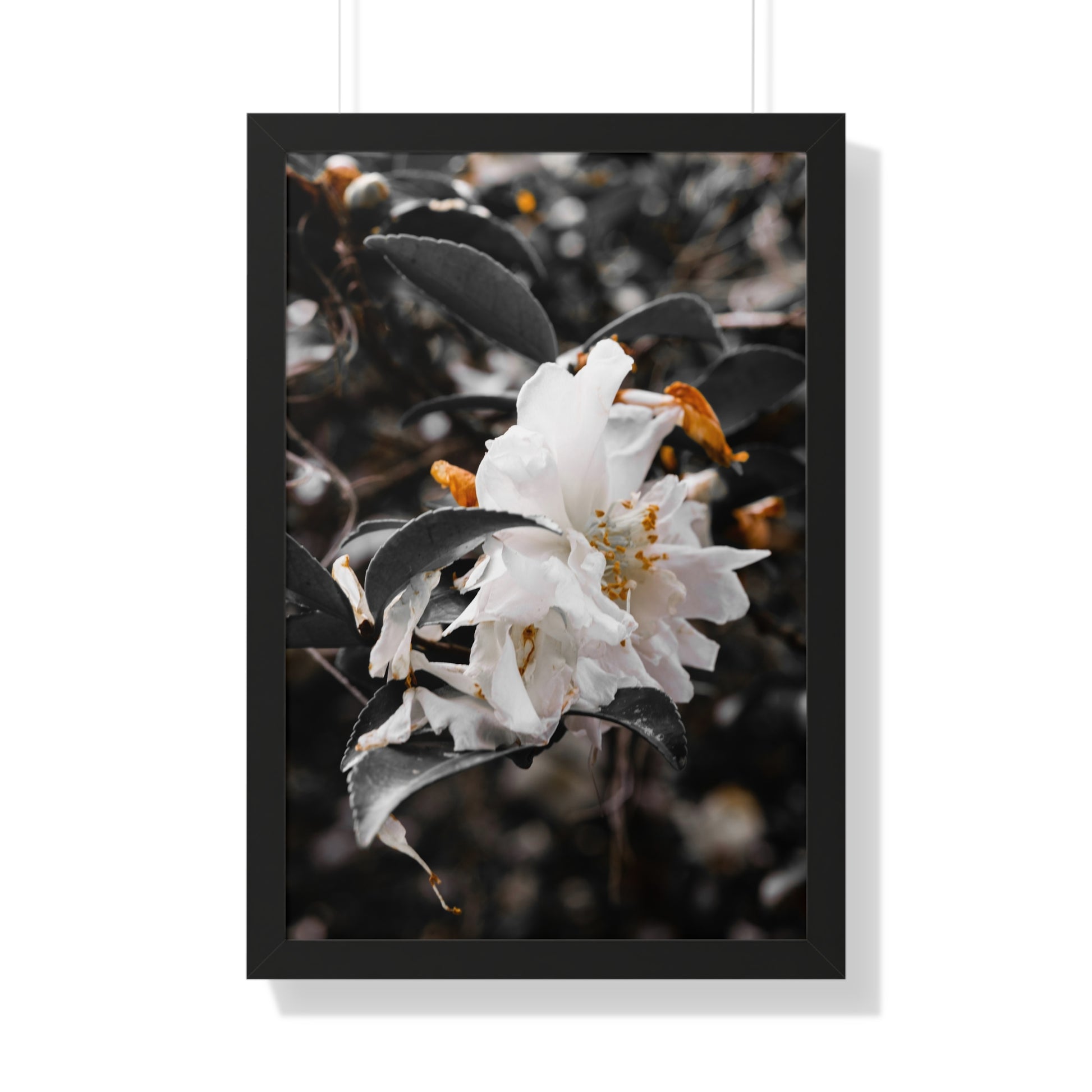 Discover the beauty of simplicity with this striking photography print featuring a delicate white flower against a muted backdrop. The subtle contrast highlights the intricate details of the petals and leaves, creating a serene and elegant composition. This image captures the essence of nature's beauty, making it a perfect addition to any space. Ideal for those who appreciate floral art, this print brings a touch of sophistication and tranquility to your home or office decor.