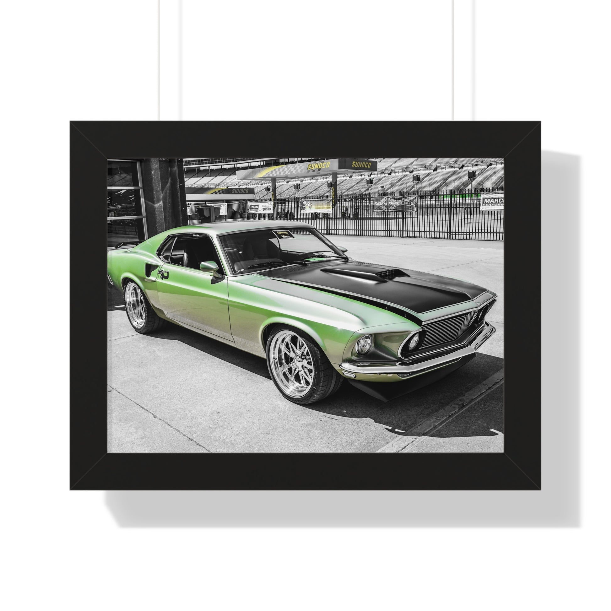 Mustang Green Glory: Vintage Car Elegance - Framed Photography Print
