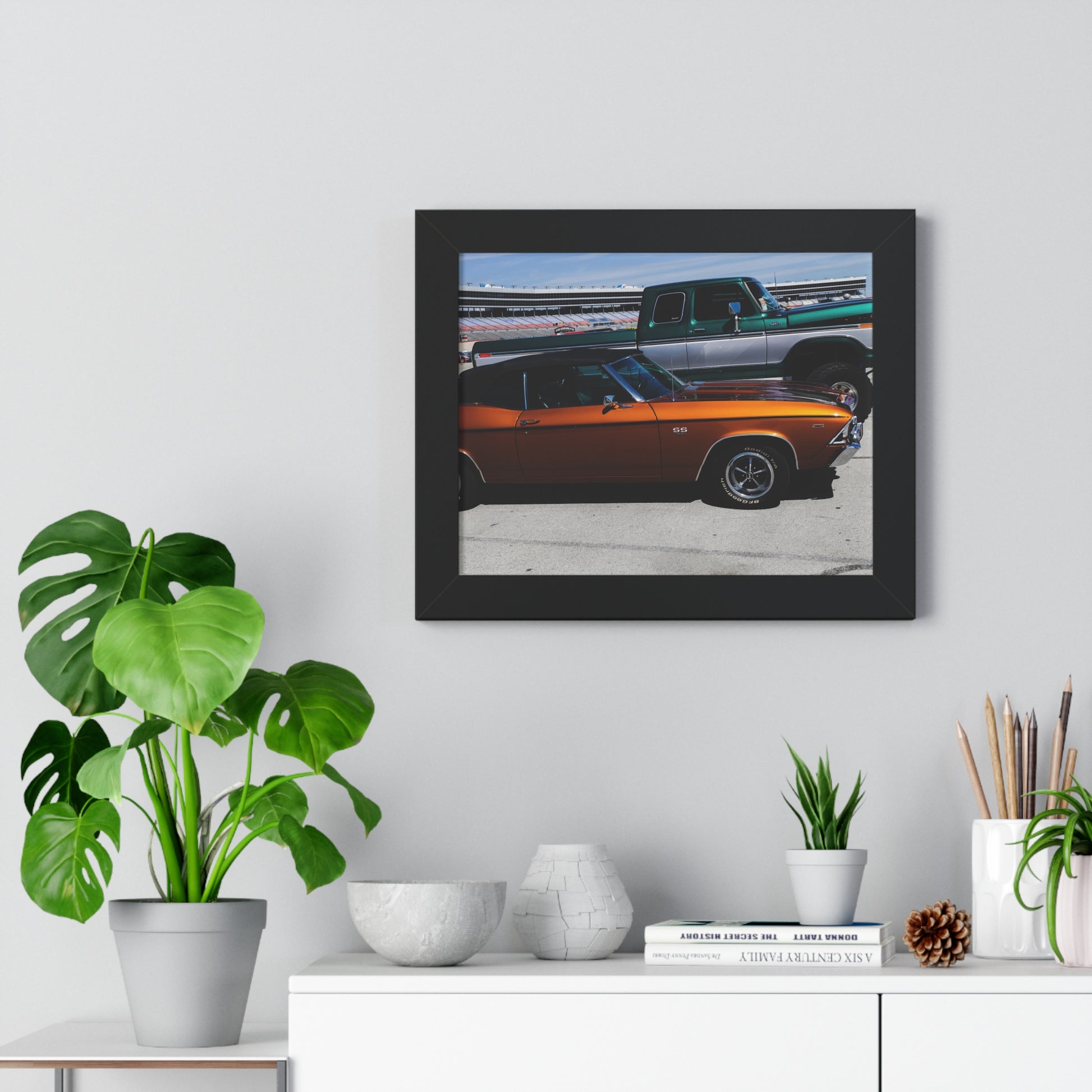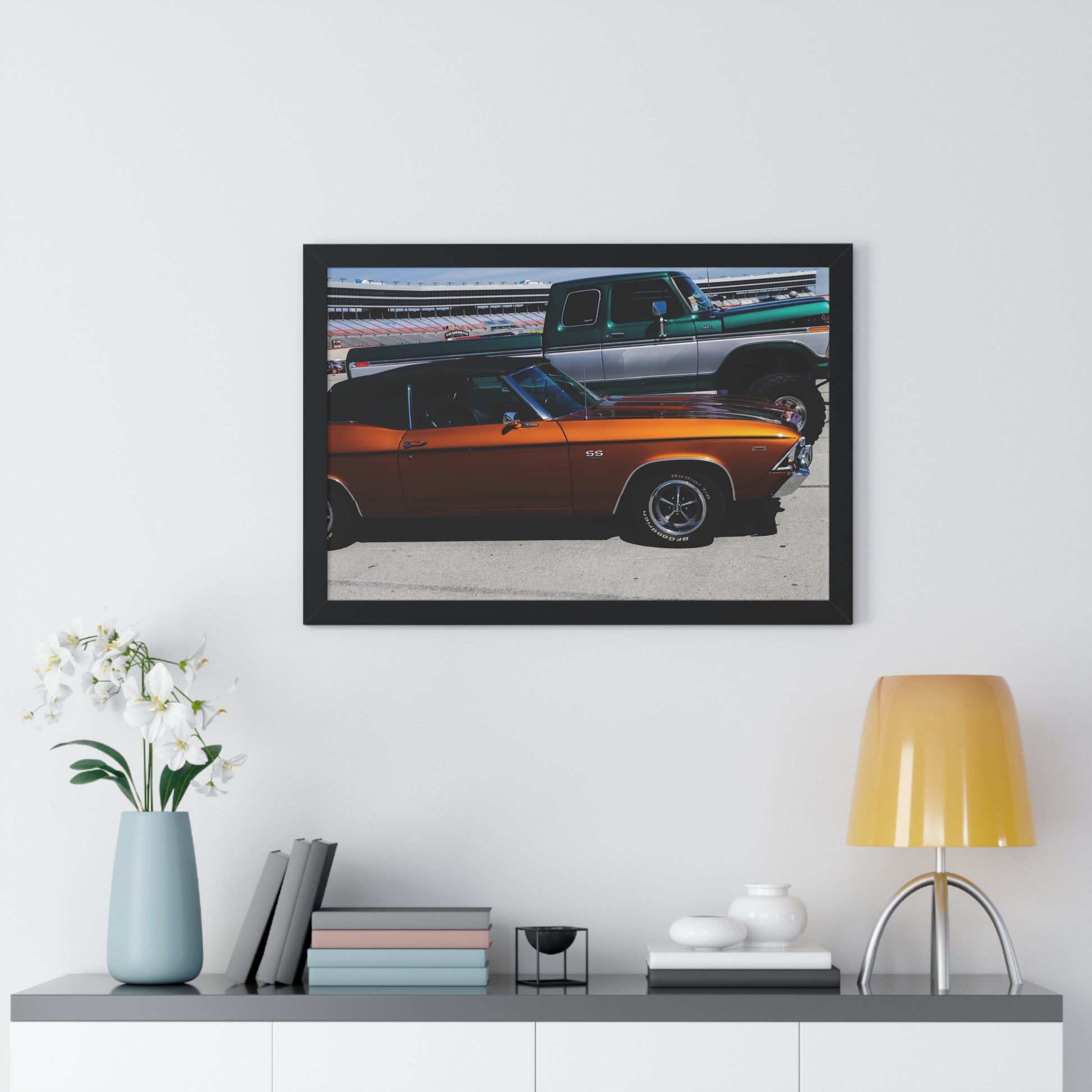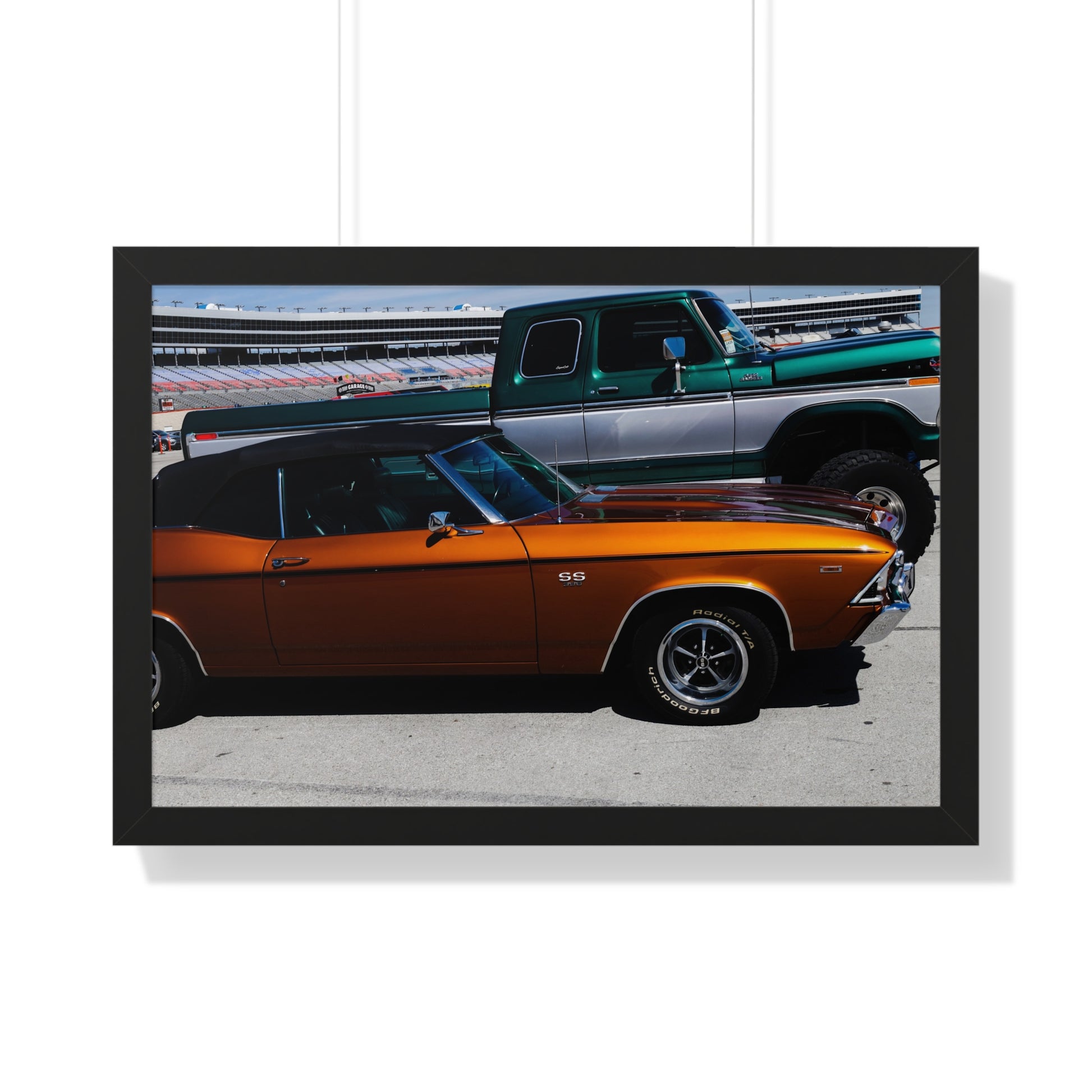 Rustic Charm: Vintage Truck and Car Duo - Framed Photography Print