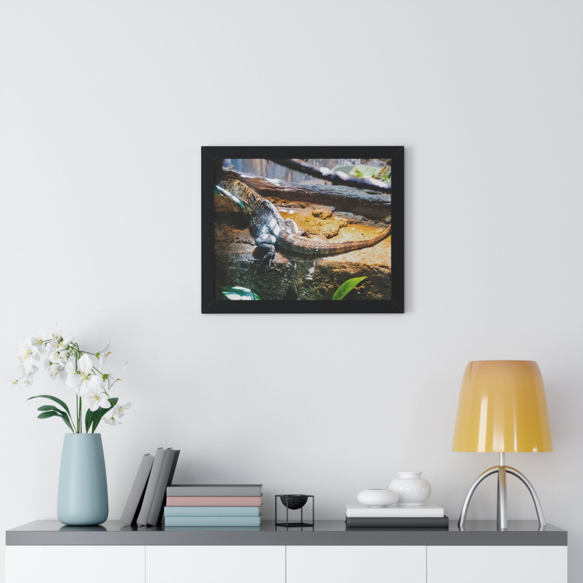 Sunlit Repose: A Lizard in Its Habitat - Framed Photography Print