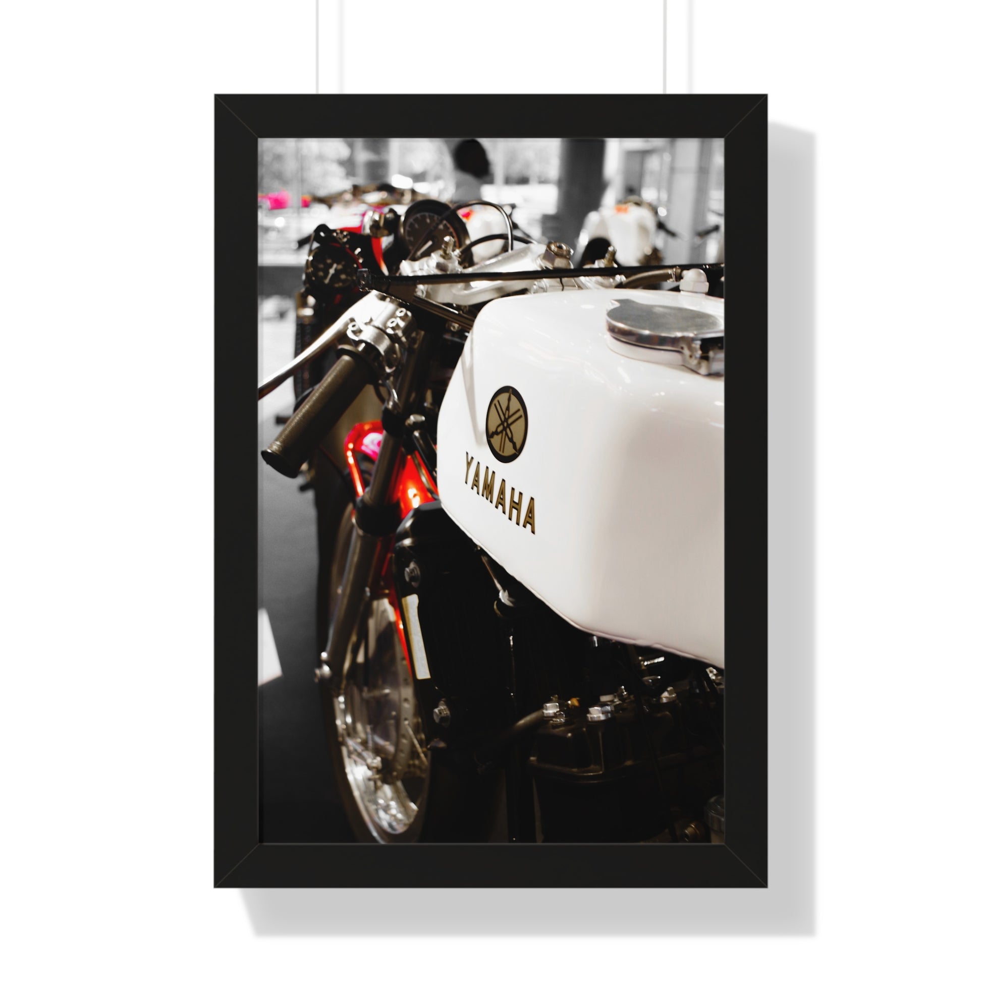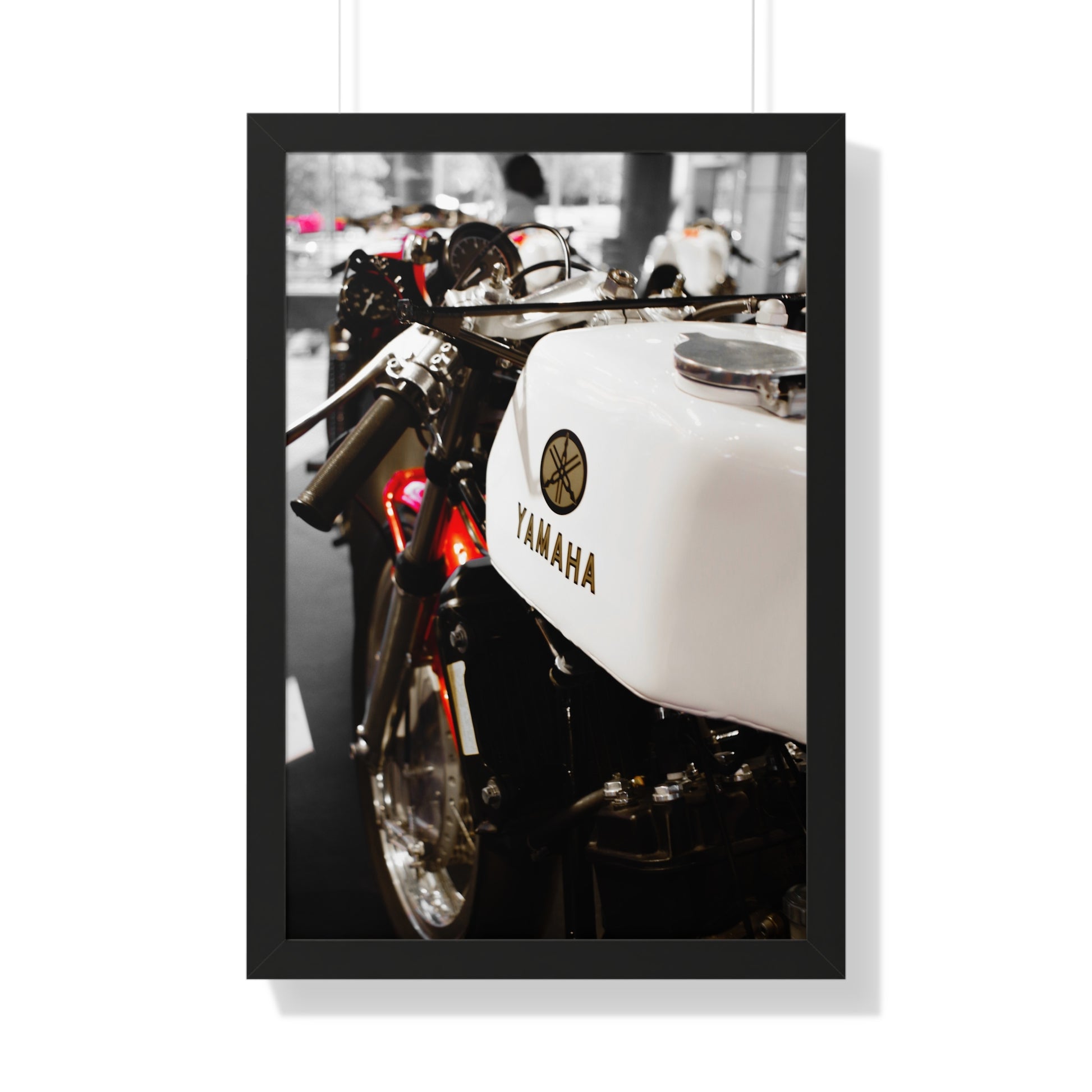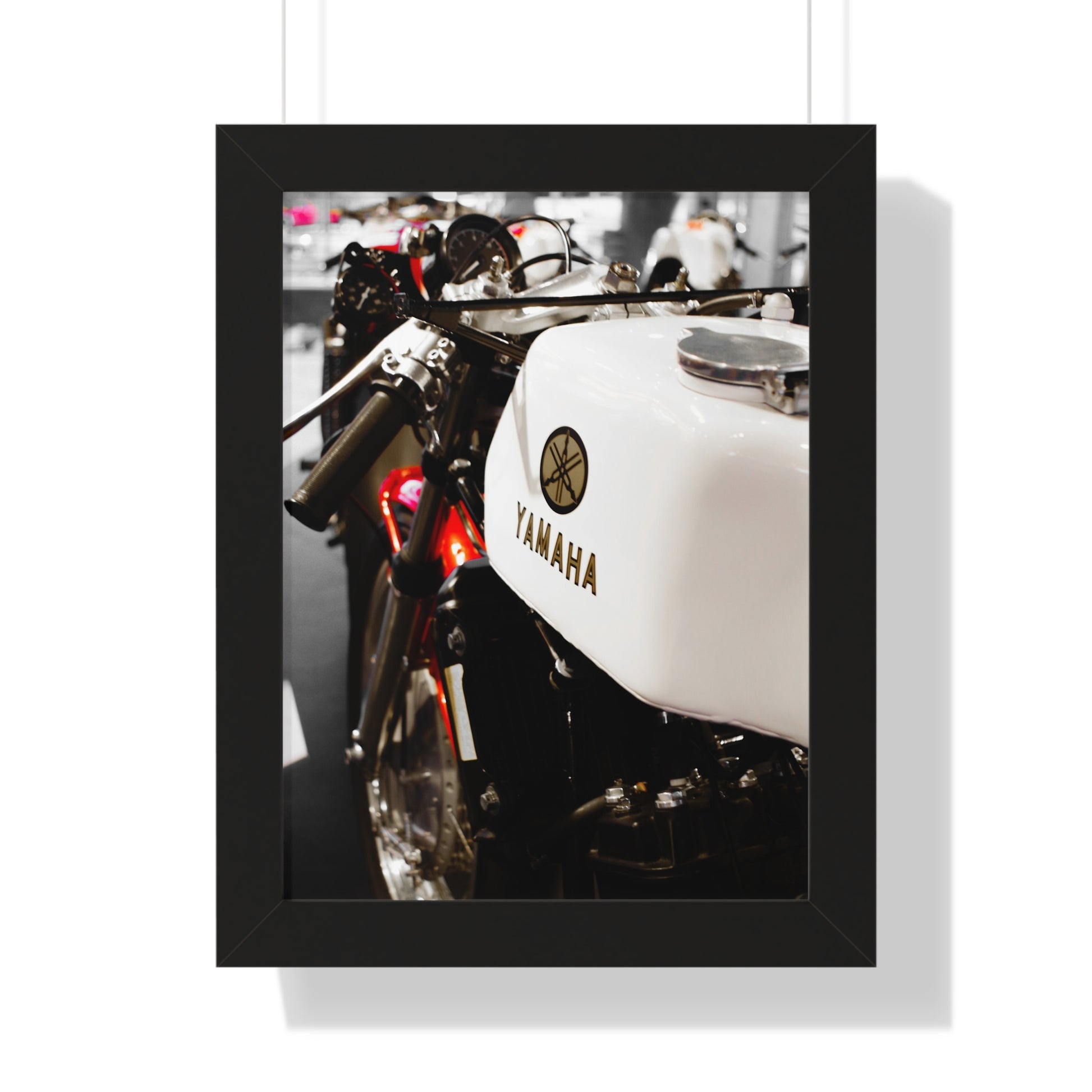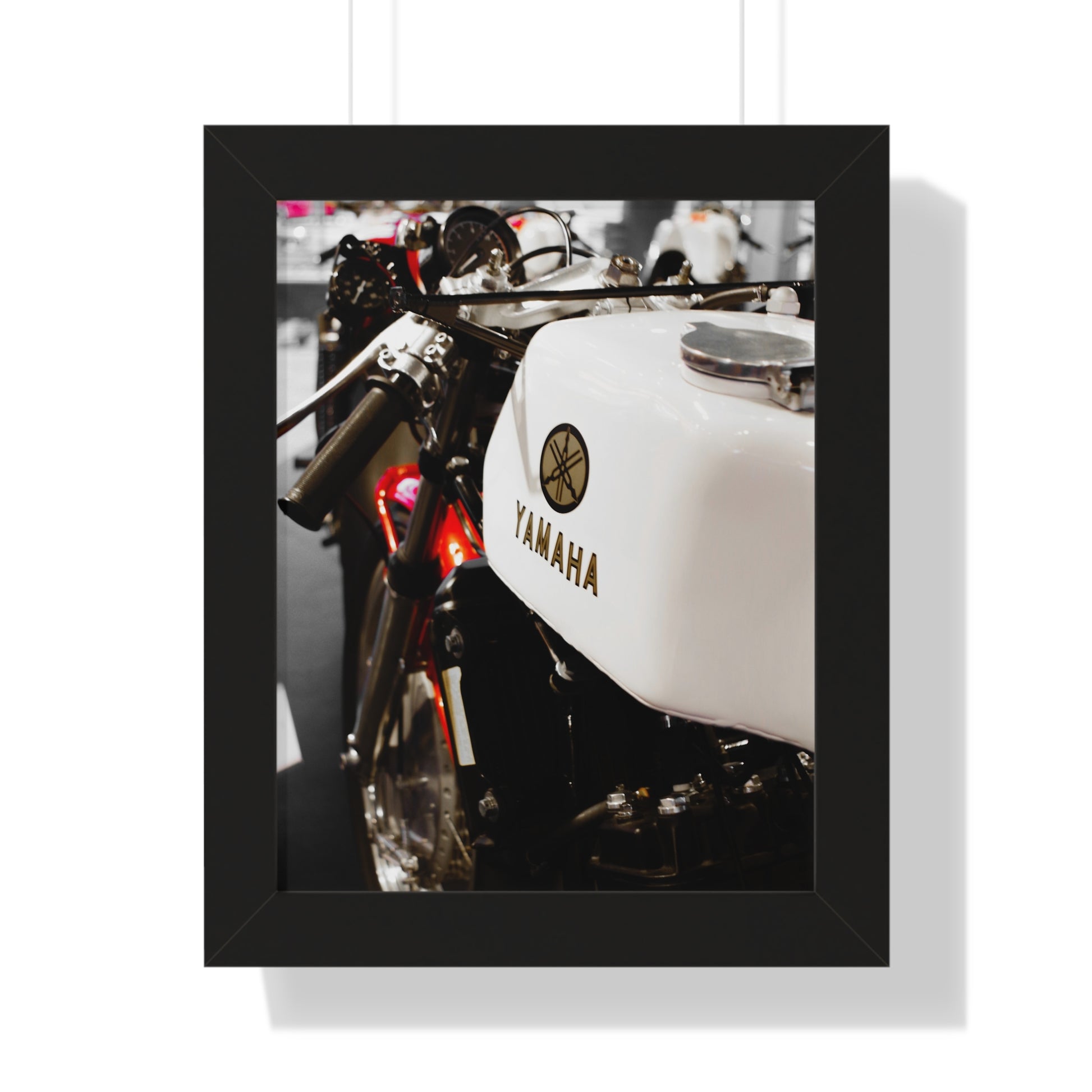 Celebrate the innovation and style of Yamaha with this captivating framed print featuring a Yamaha motorcycle from the Barber Vintage Motorsports Museum. This artwork beautifully showcases the sleek design and engineering excellence of this iconic bike, making it a perfect addition for motorcycle enthusiasts and collectors alike. Enhance your decor with this striking piece that embodies the spirit of Yamaha’s legacy in motorsport.